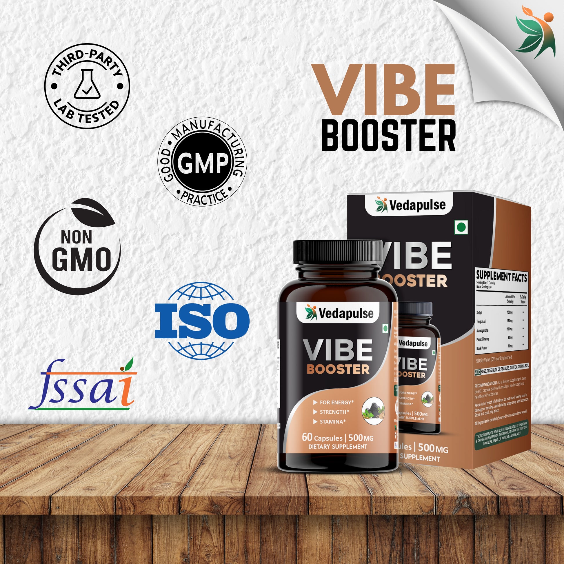 Herb Vibe Booster 60 Capsules | Herbal Energy, Strength & Stamina Support | Shilajit , Tongkat Ali, Ashwagandha| Vedapulse