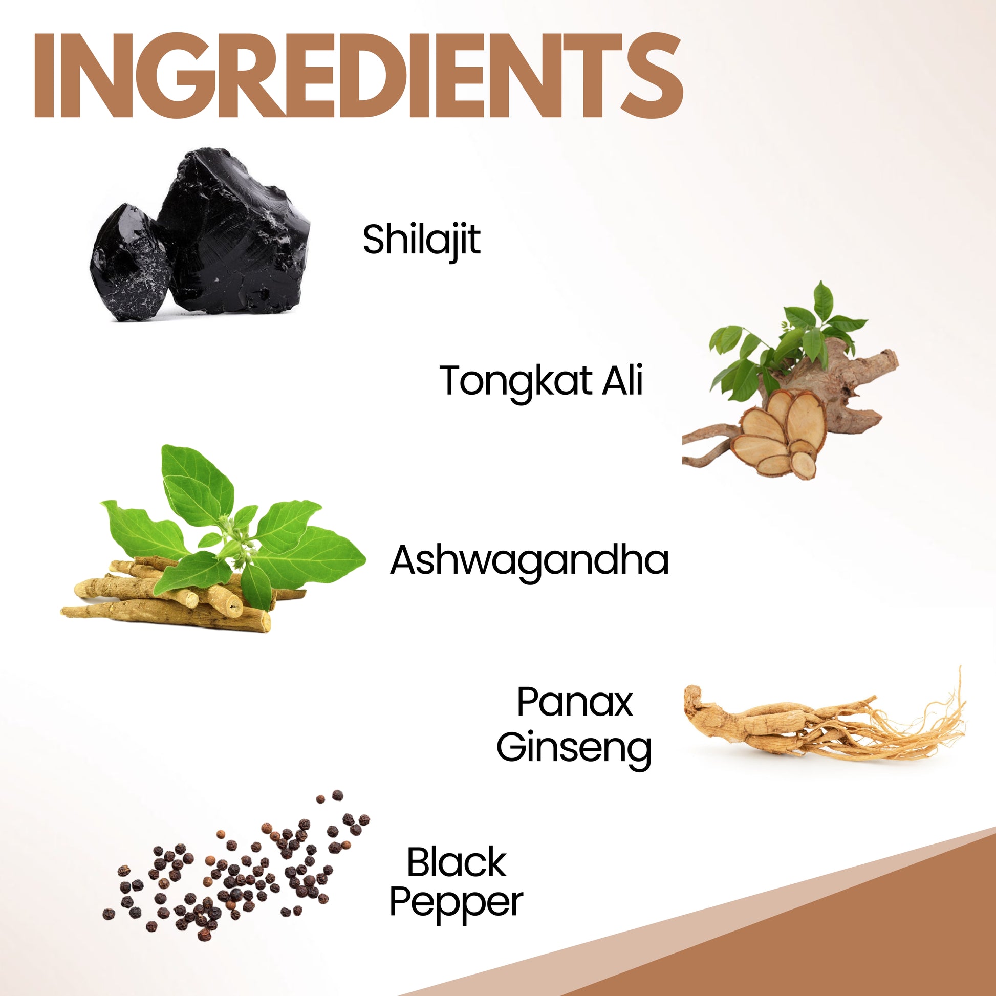 - Shilajit (150 mg): Known as a natural rejuvenator, supports energy metabolism and endurance.