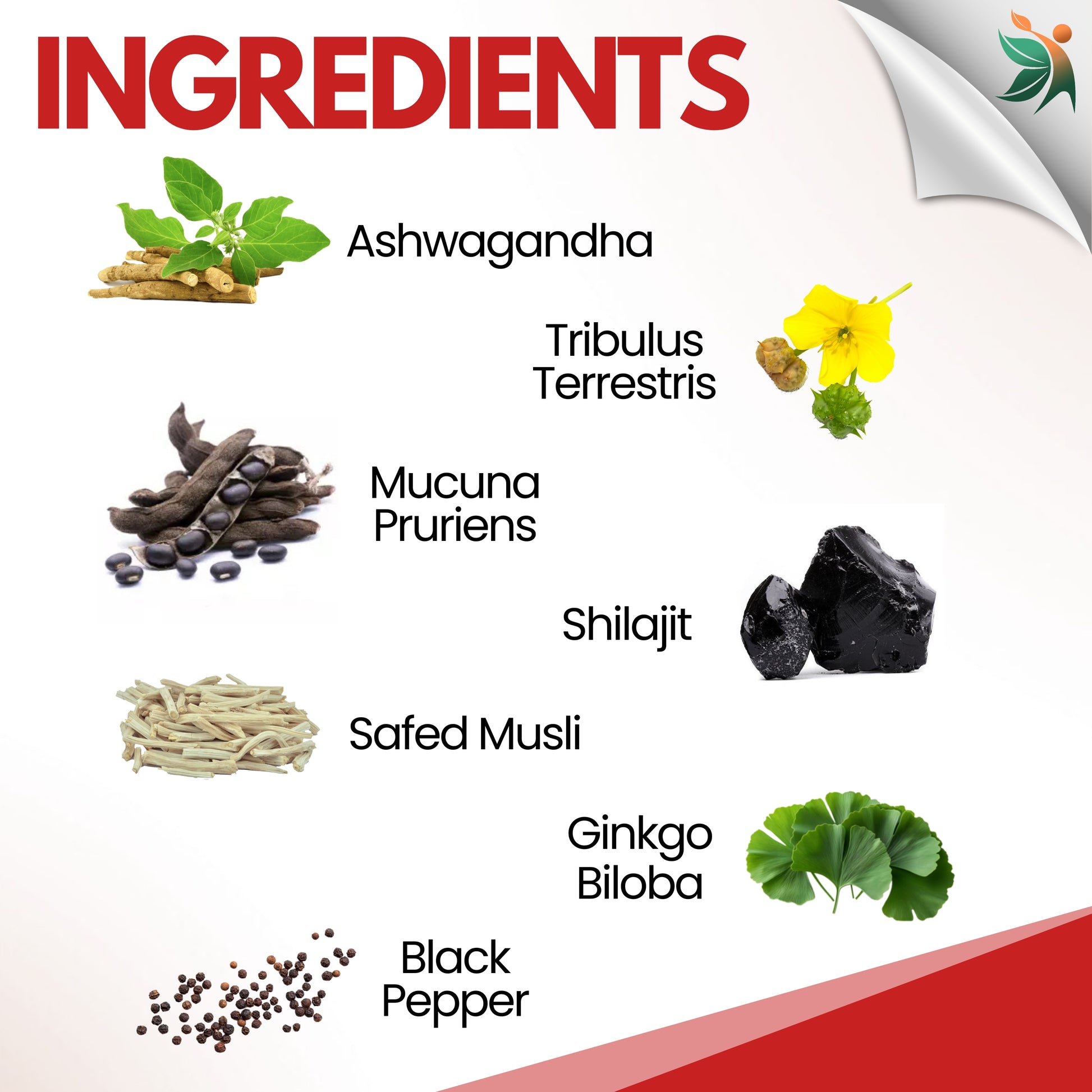 - Mucuna Pruriens (Kaunch Beej) Extract (200 mg): Known to promote stamina and wellness.
